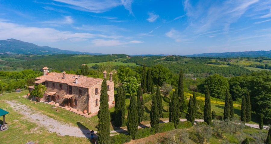 למכירה בית חווה בגבול של אומבריה וטוסקנה, מוקף לחלוטין בגבעות.