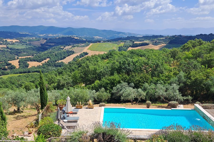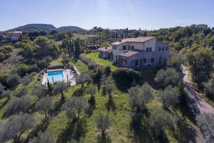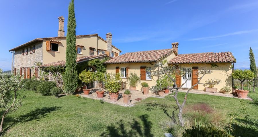 למכירה באומבריה חווה יפייפיה ששוחזרה ב-2005 ממוקמת מול נוף עוצר נשימה.