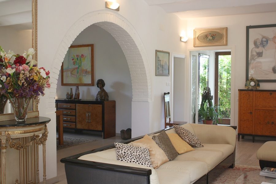 במפלס הכניסה סלון גדול, חדר משפחה, חדר אוכל ומטבח, תקרות מאוד גבוהות, יציאות רבות לגינה.