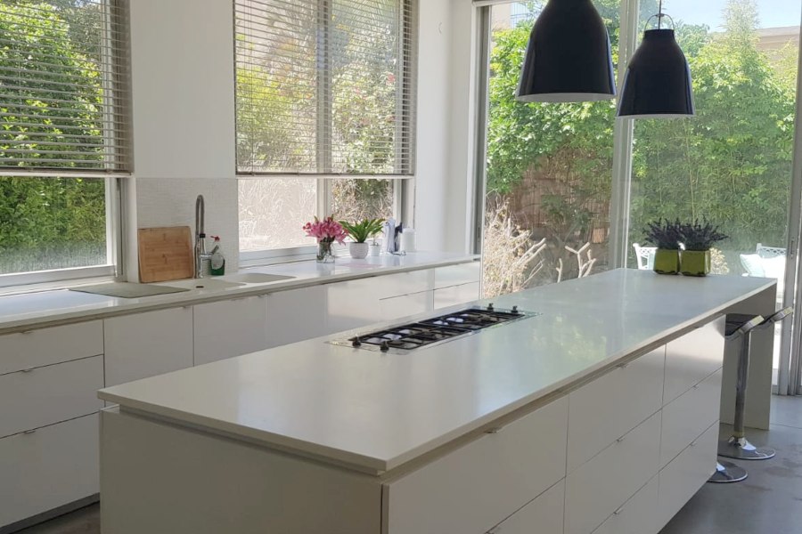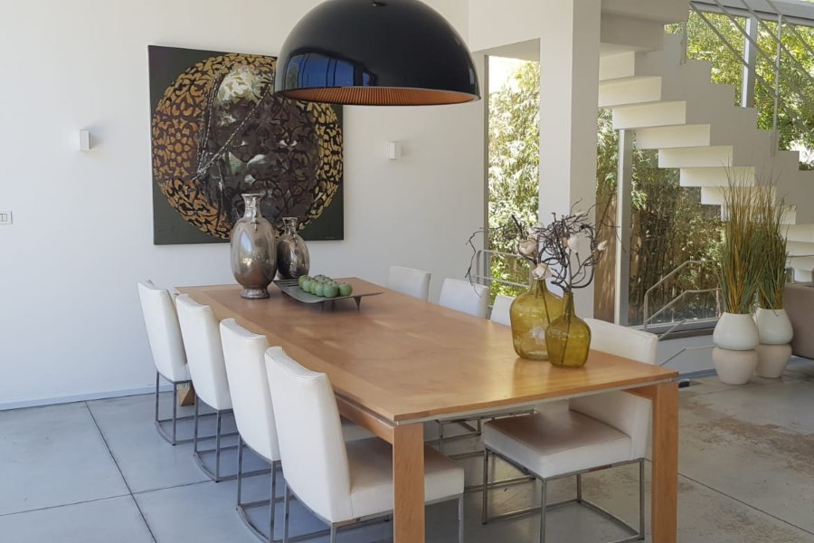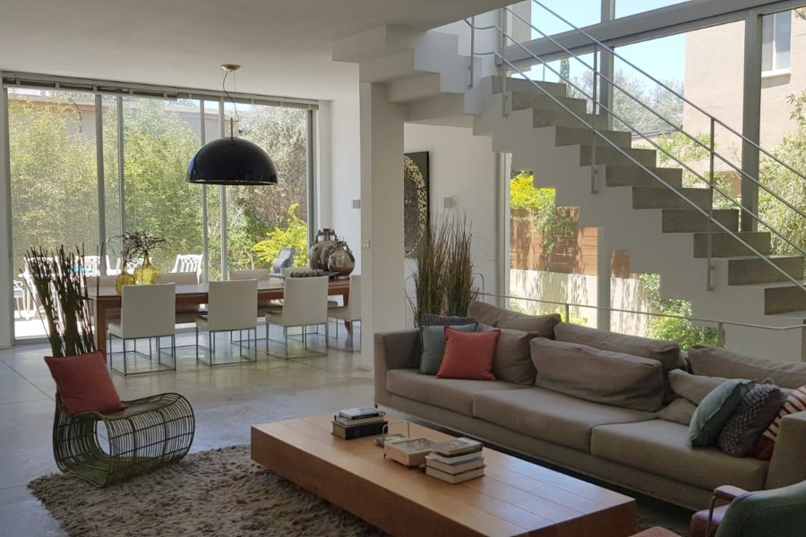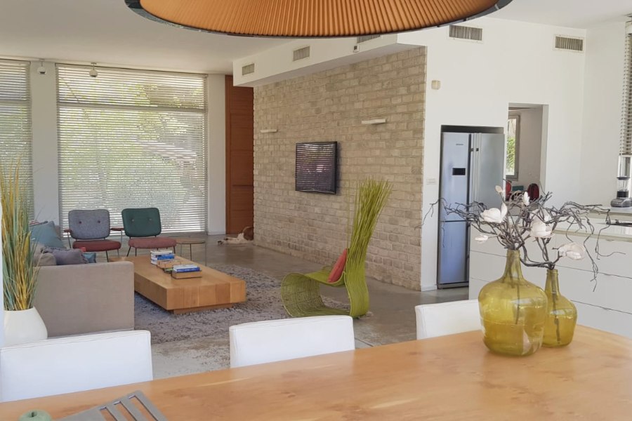 חלל אירוח מאוד גדול, הכולל מטבח חדש, סלון ופינת אוכל מוארים בכל שעות היום.