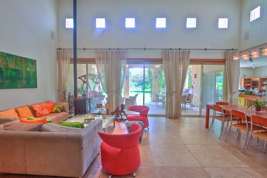 בקומת כניסה חלל אירוח גדול מאוד , חדר משפחה צמוד למטבח, סלון פונה לגינה יפייפיה, משרד ומסטר הורים גדול מאוד.