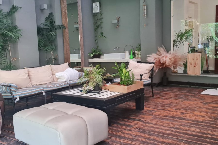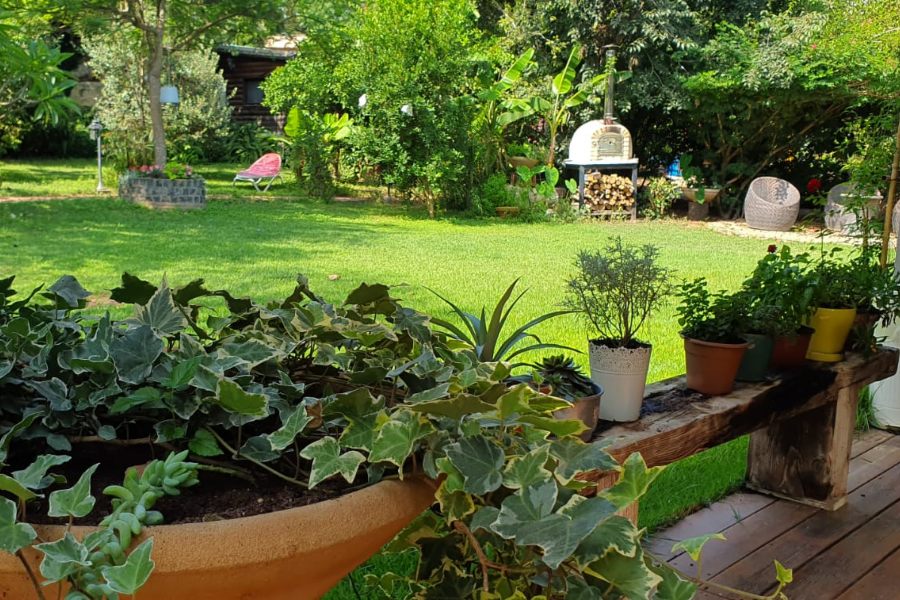 סלון פנים וסלון חוץ שמדברים מעולה עם הגינה היפייפיה.